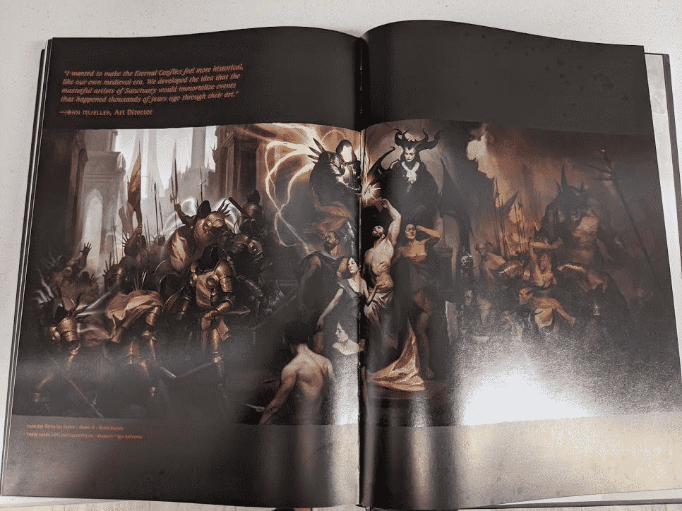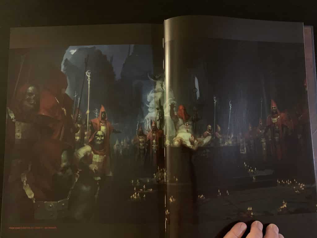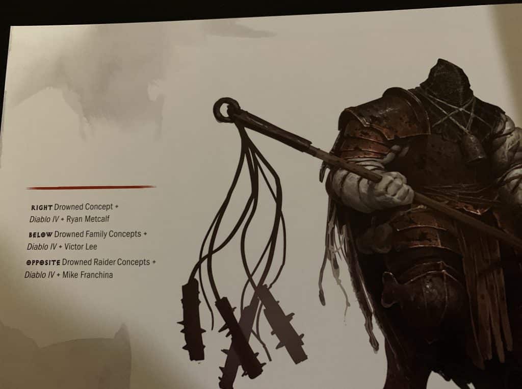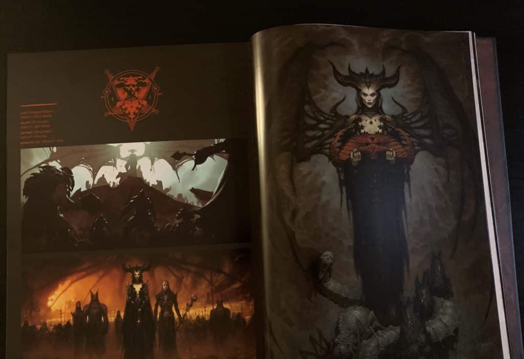 Con las puertas del Ahaheim Convention Center abiertas están saliendo a la luz fotografías tanto del interior como curiosidades o… ¡del propio libro de arte de Diablo! Lo que os mostramos a continuación son imágenes de esto mismo donde, además, podemos casi confirmar con una de ellas que Diablo IV es ya una realidad y que, tal y como se aprecia en el número romano que acompaña a la ilustración, va a ser mucho más oscuro y tenebroso que su tercera parte.
