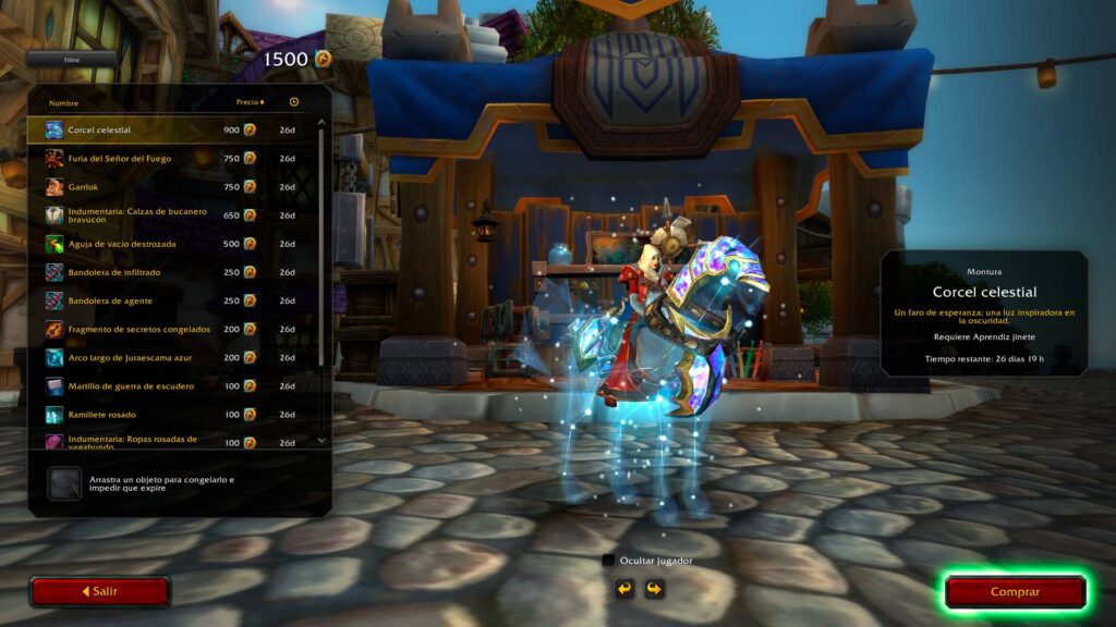 El puesto comercial siempre tiene nuevas monturas, y los precios no son nada altos. Comprueba cuantas monedas tienes y hazte con todas las que puedas asumir. Recuerda que si compras ediciones más caras de Midnight, aumentará también el número de monedas que conseguirás, ya que vienen incluidas en la compra de la expansión. Debes saber que estas monturas se ligan a tu cuenta de Battle.net, lo que te permitirá disfrutarlas con todos los personajes. Da igual de que raza, facción o reino seas.